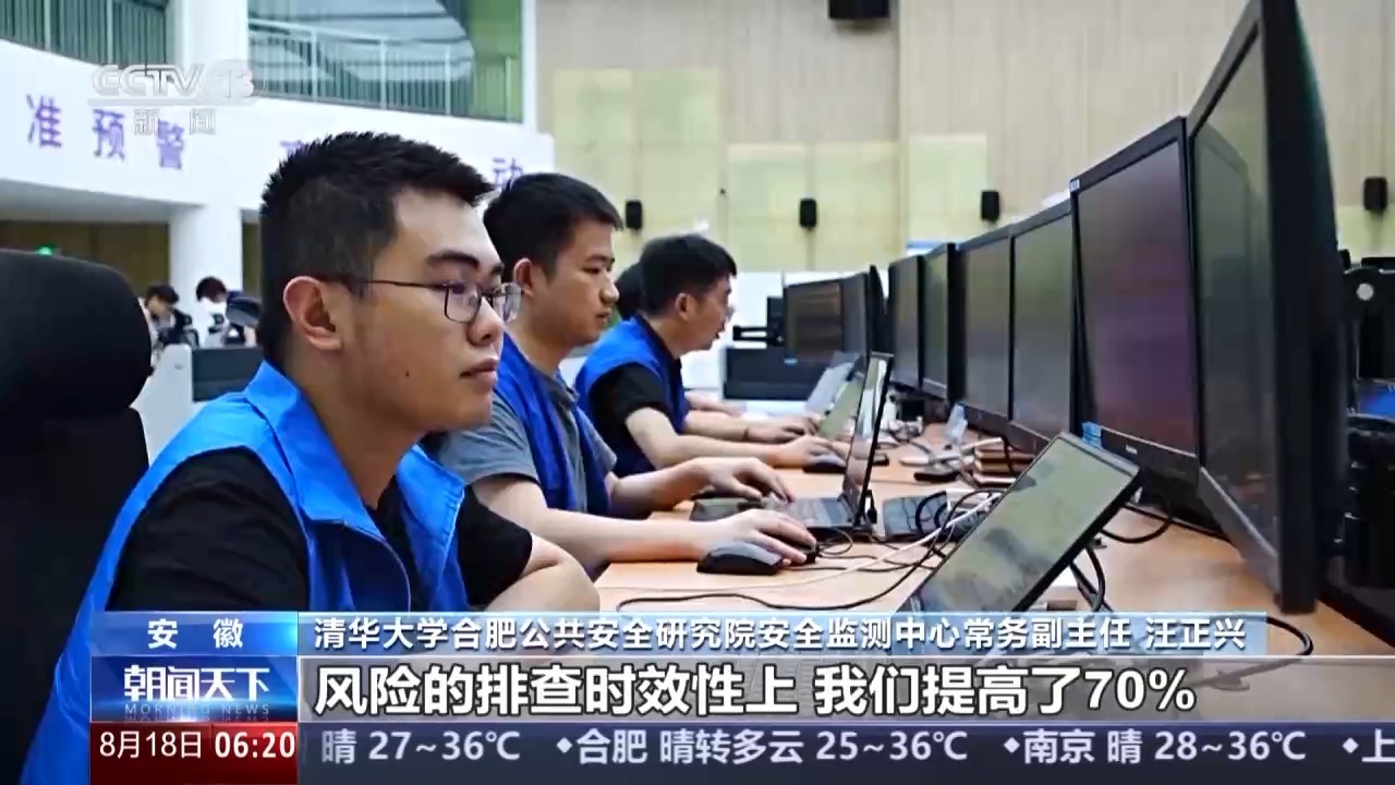 清华大学合肥公共安全研究院安全监测中心常务副主任 汪正兴:大模型、大数据的技术,赋能我们快速有效找准城市安全风险隐患在哪,事故可能发生的概率有多大。风险排查时效性上,提高了70%。