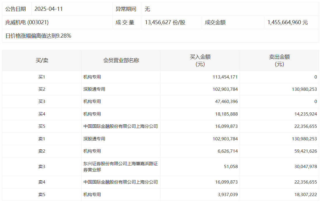 兆威机电今日涨停 三机构专用席位净买入1.65亿元兆威机电今日涨停 三机构专用席位净买入1.65亿元