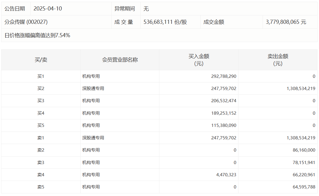 分众传媒今日涨停 四机构专用席位净买入8.04亿元安全炒股配资分众传媒今日涨停 四机构专用席位净买入8.04亿元