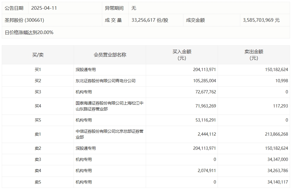 圣邦股份今日涨停 二机构专用席位净买入1.26亿元圣邦股份今日涨停 二机构专用席位净买入1.26亿元